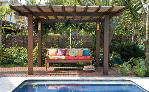 Como decorar pergolado com plantas. Para quem quer ter um pergolado em casa. Conheca todos os tipos e confira 99 projetos que usam este item em areas externas veja e confira. Uma das opcoes mais bonitas para criar nas varandas ou jardins e o pergolado de bambu voce conhece. Venha descobrir mais sobre essa estrutura.