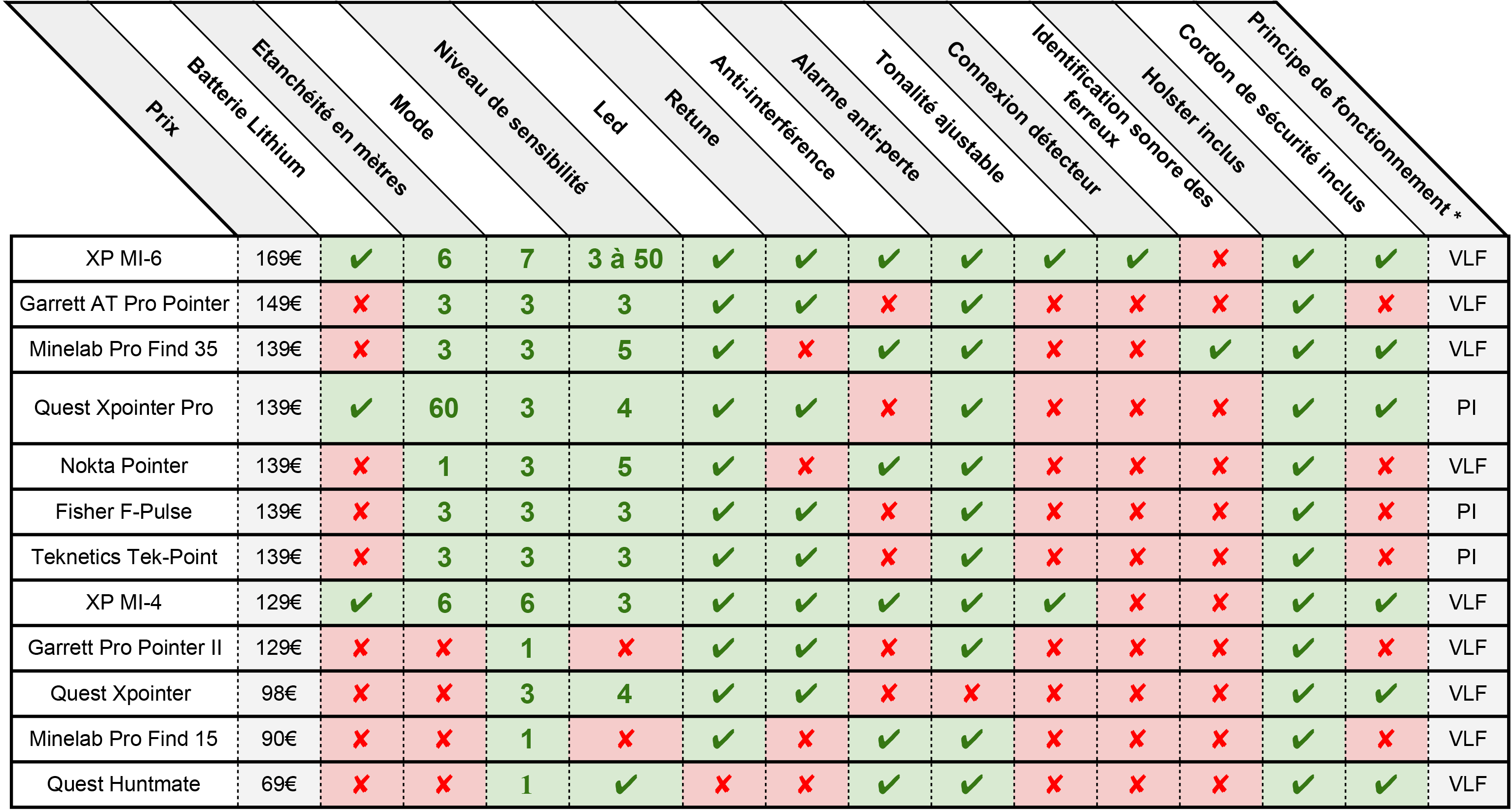 Tableau Comparatif De Tous Les Detecteurs De Metaux Le Fouilleur