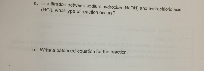 Hydrochloric acid and sodium hydroxide sodium chloride and water. Effects concentration and temperature on the rate of reaction however i also need a method which does not stir the mixture so vigorously that the. 02m sodium hydroxide standardization against hcl.