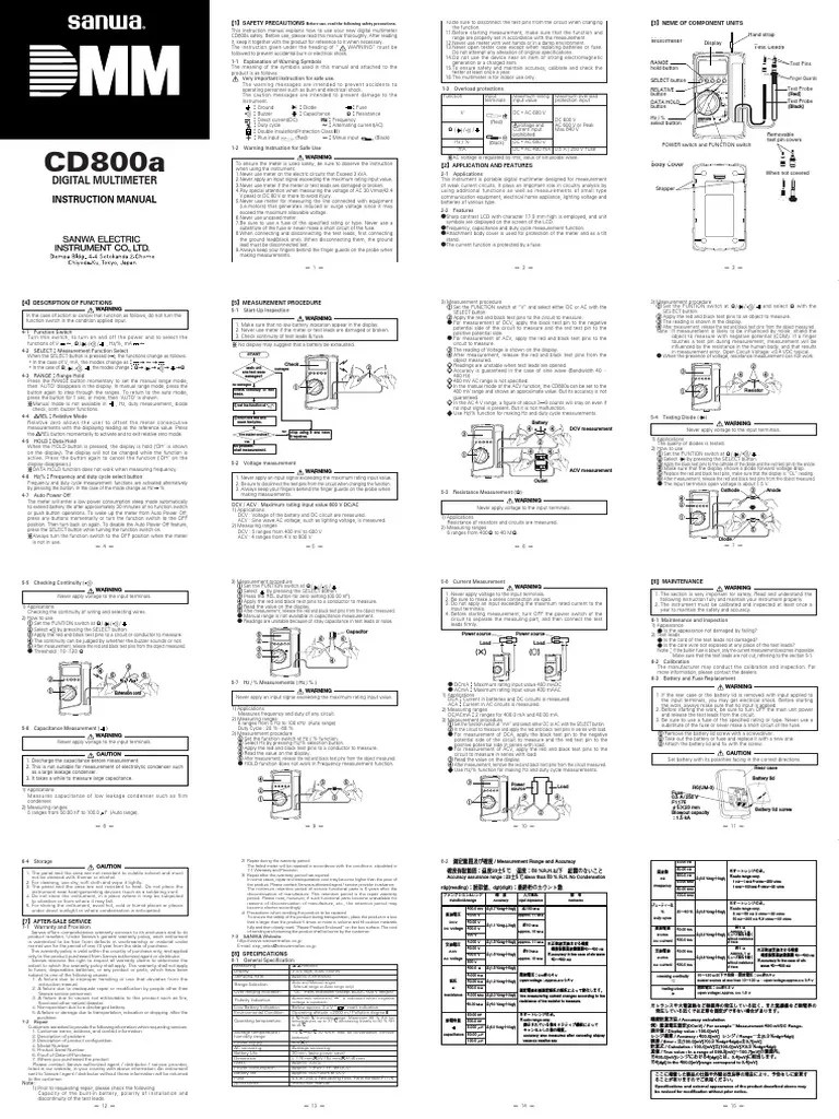 Sanwa Digital Multimeter Cd800a Manual