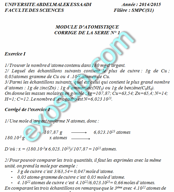 Les Series D Atomistique Corriges Smpc S1 Universite Abdelmalek