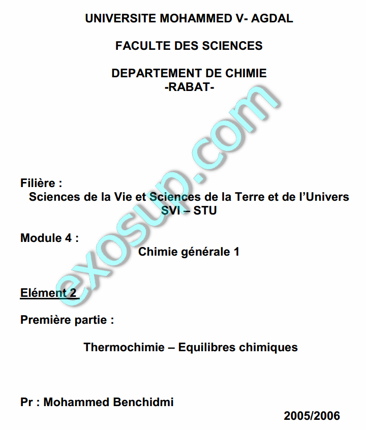 Cours Et Exercices Chimie Generale Svi Stu S1 Fsr